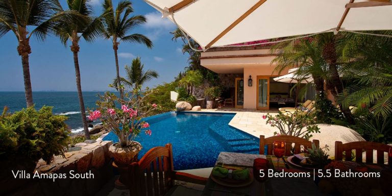 This Puerto Vallarta, Mexico luxury villa vacation rental called Villa Amapas South is located directly on Amapas Beach and is within walking distance to downtown Puerto Vallarta, Los Muertos Beach, restaurants, boutiques, and nightlife.