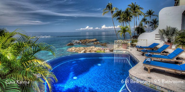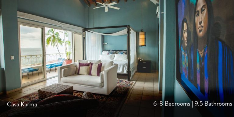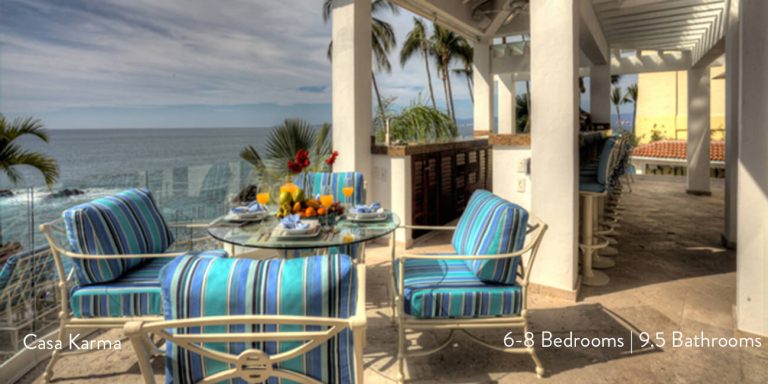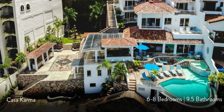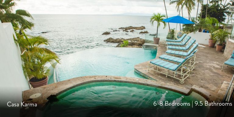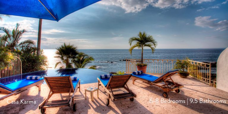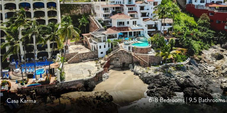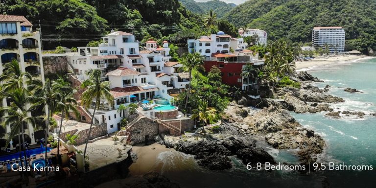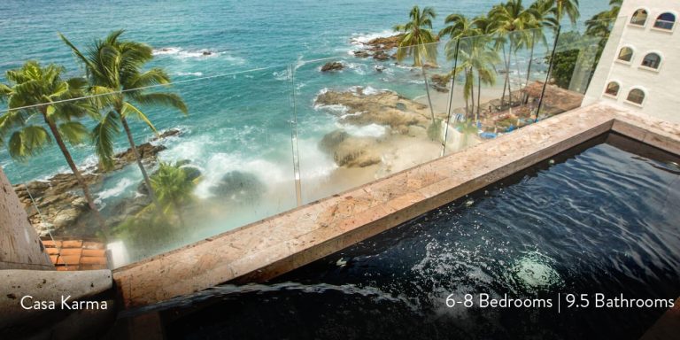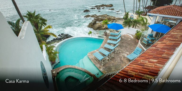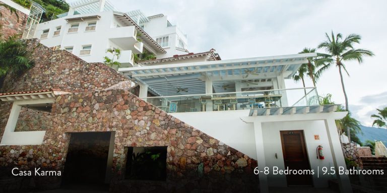 Casa Karma is a six to eight-bedroom villa, each with a private en-suite bath, private terraces, and magnificent views of Banderas Bay.