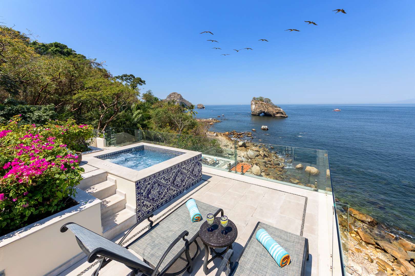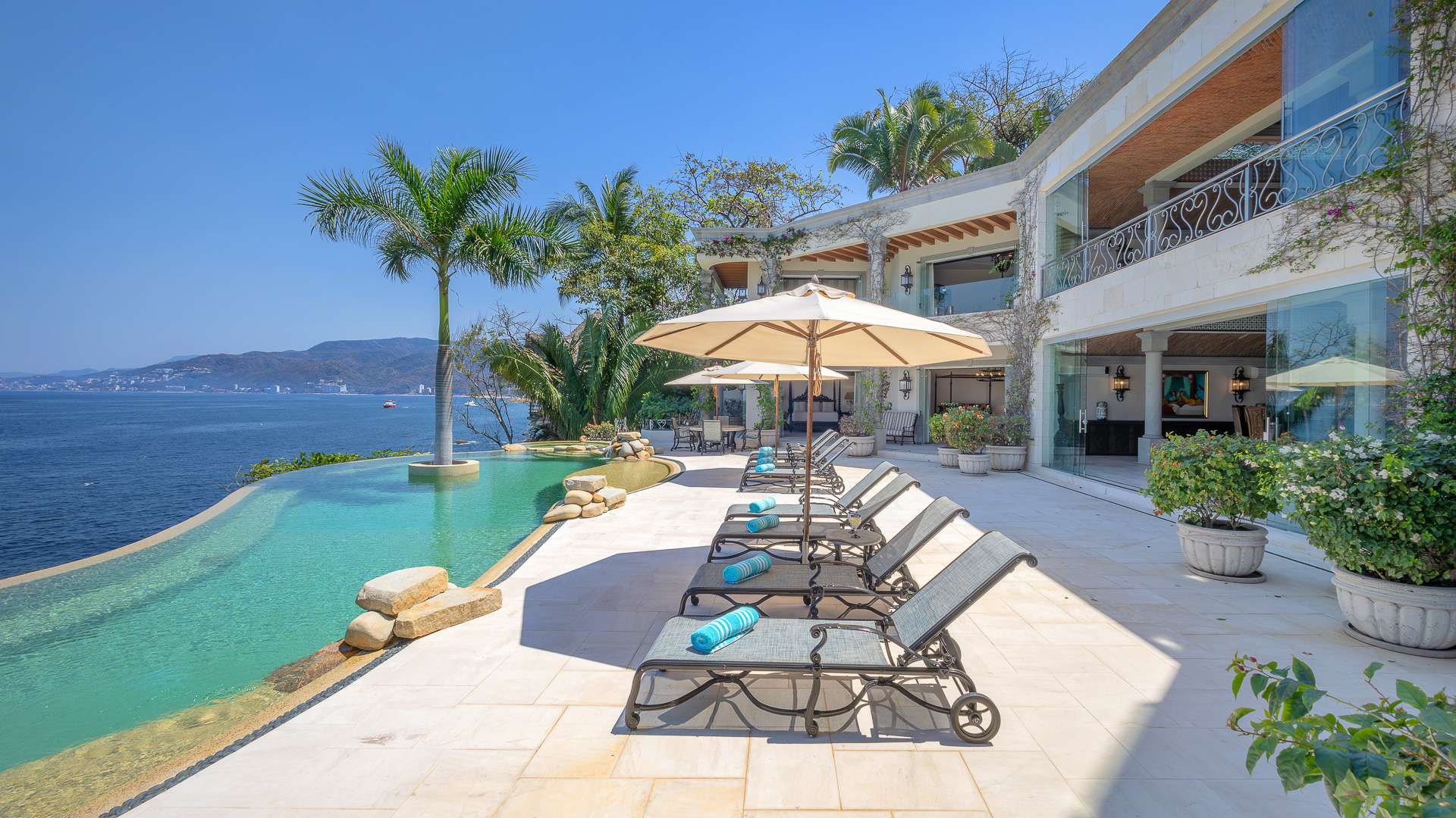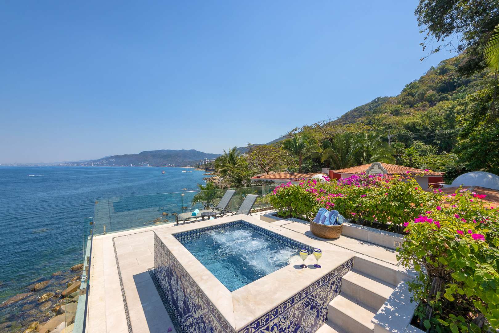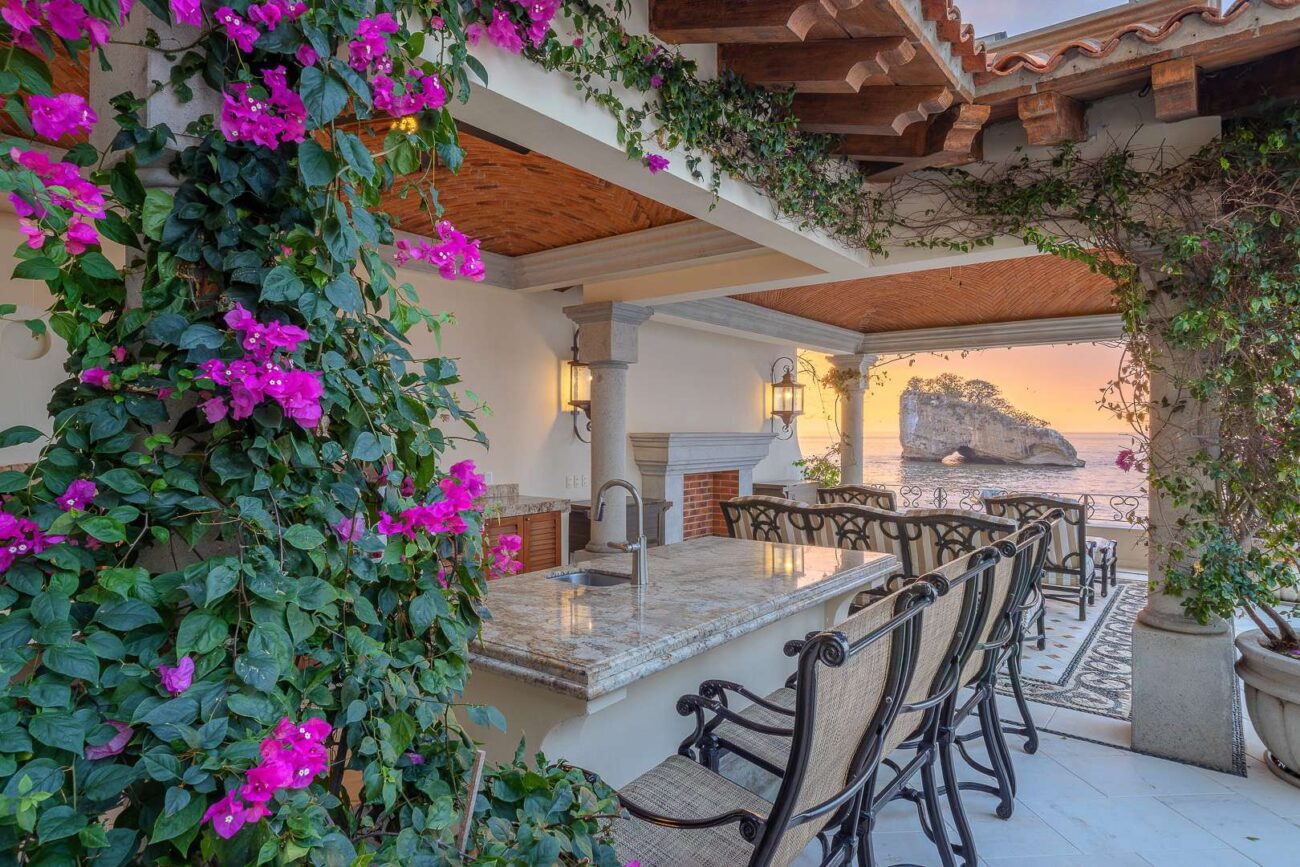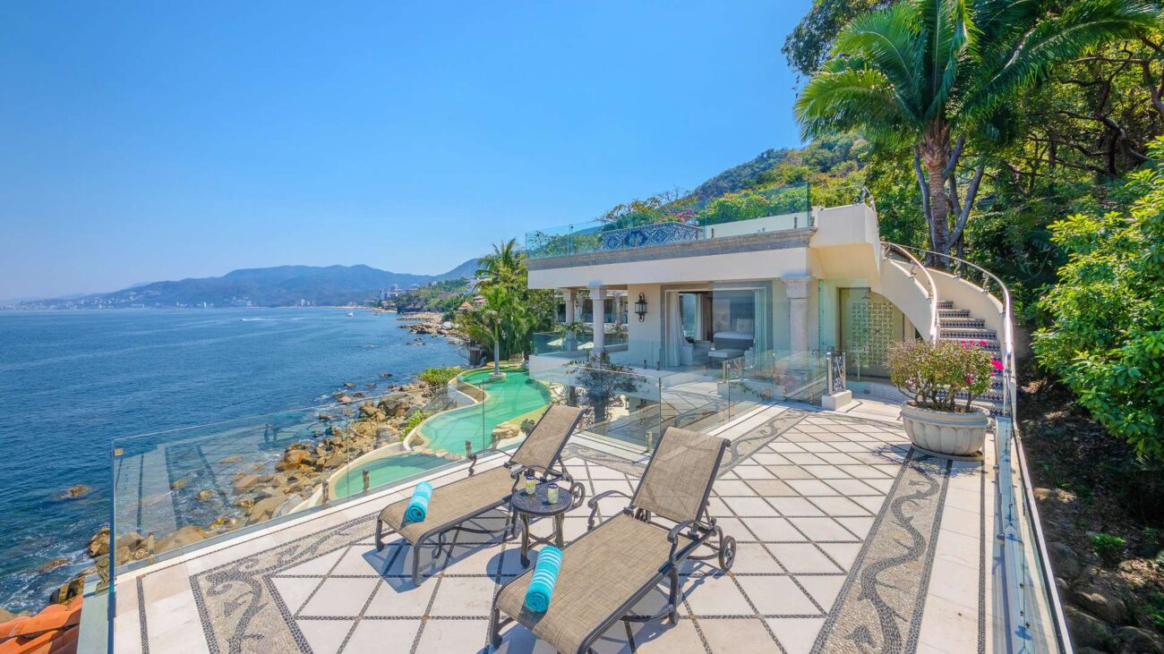 This Puerto Vallarta villa rental is situated against the stunning Sierra Madre mountain terrain and the lush seascape of Banderas Bay.