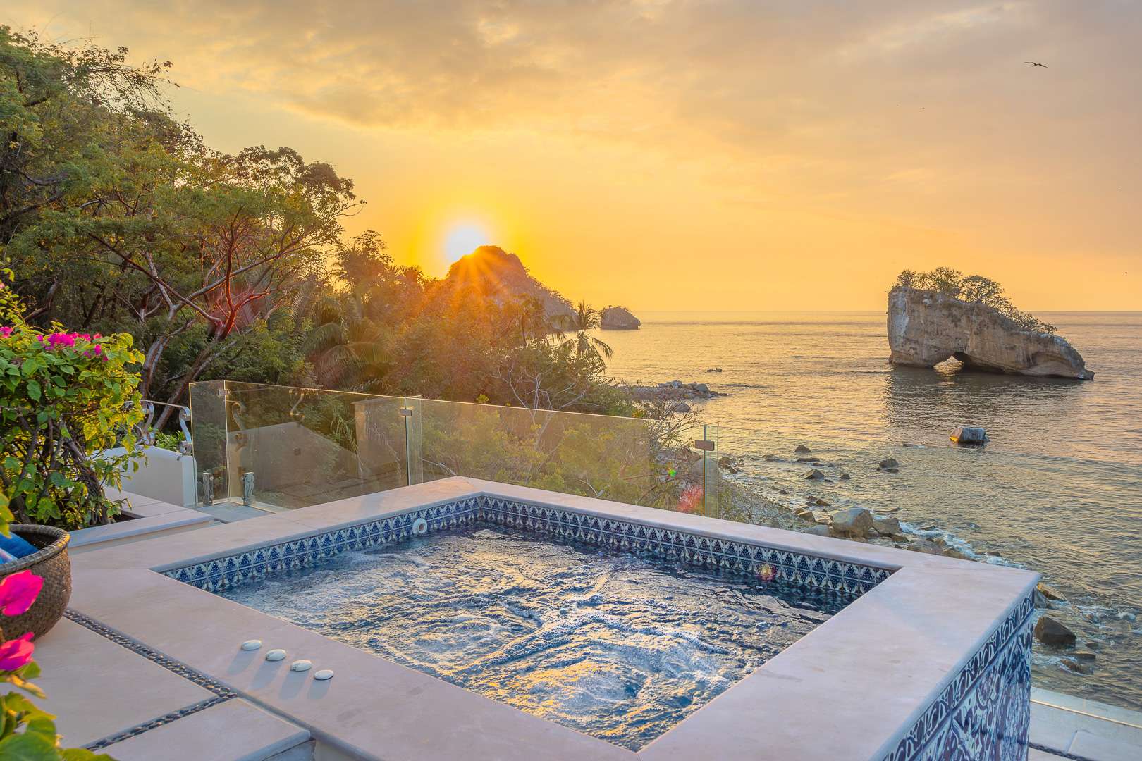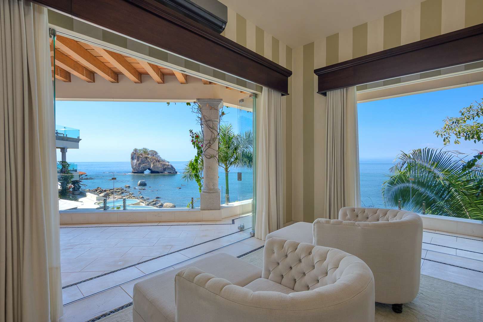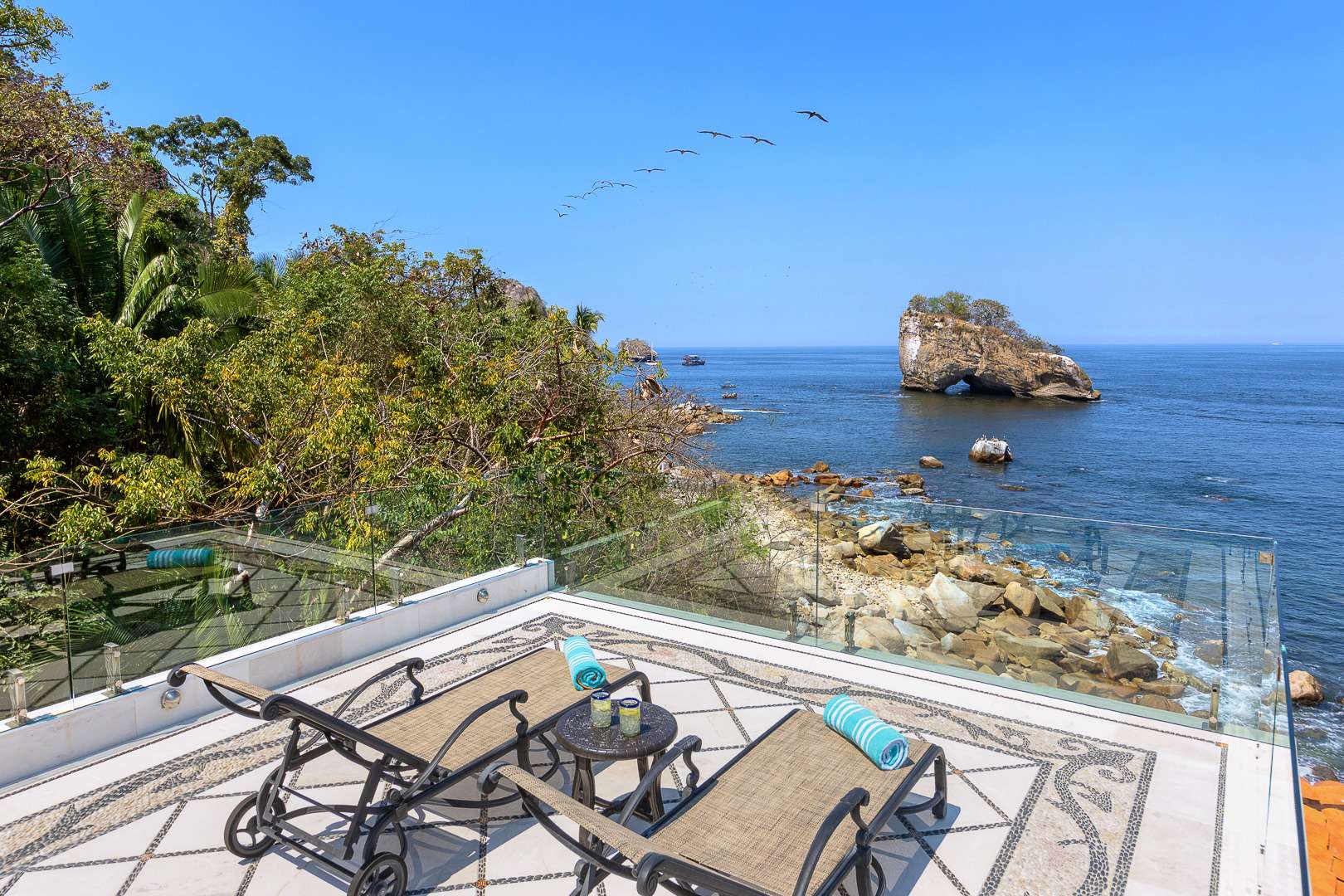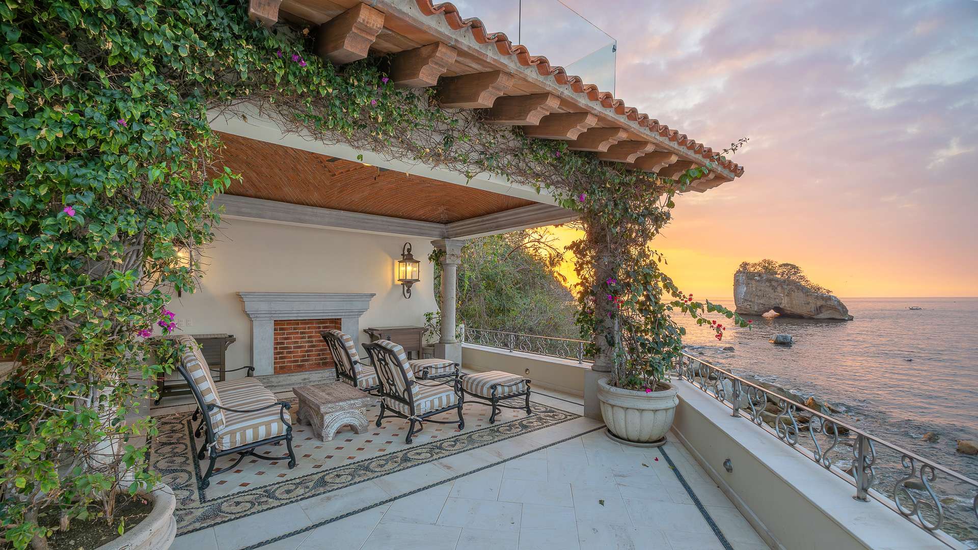 This Puerto Vallarta villa rental is situated against the stunning Sierra Madre mountain terrain and the lush seascape of Banderas Bay.