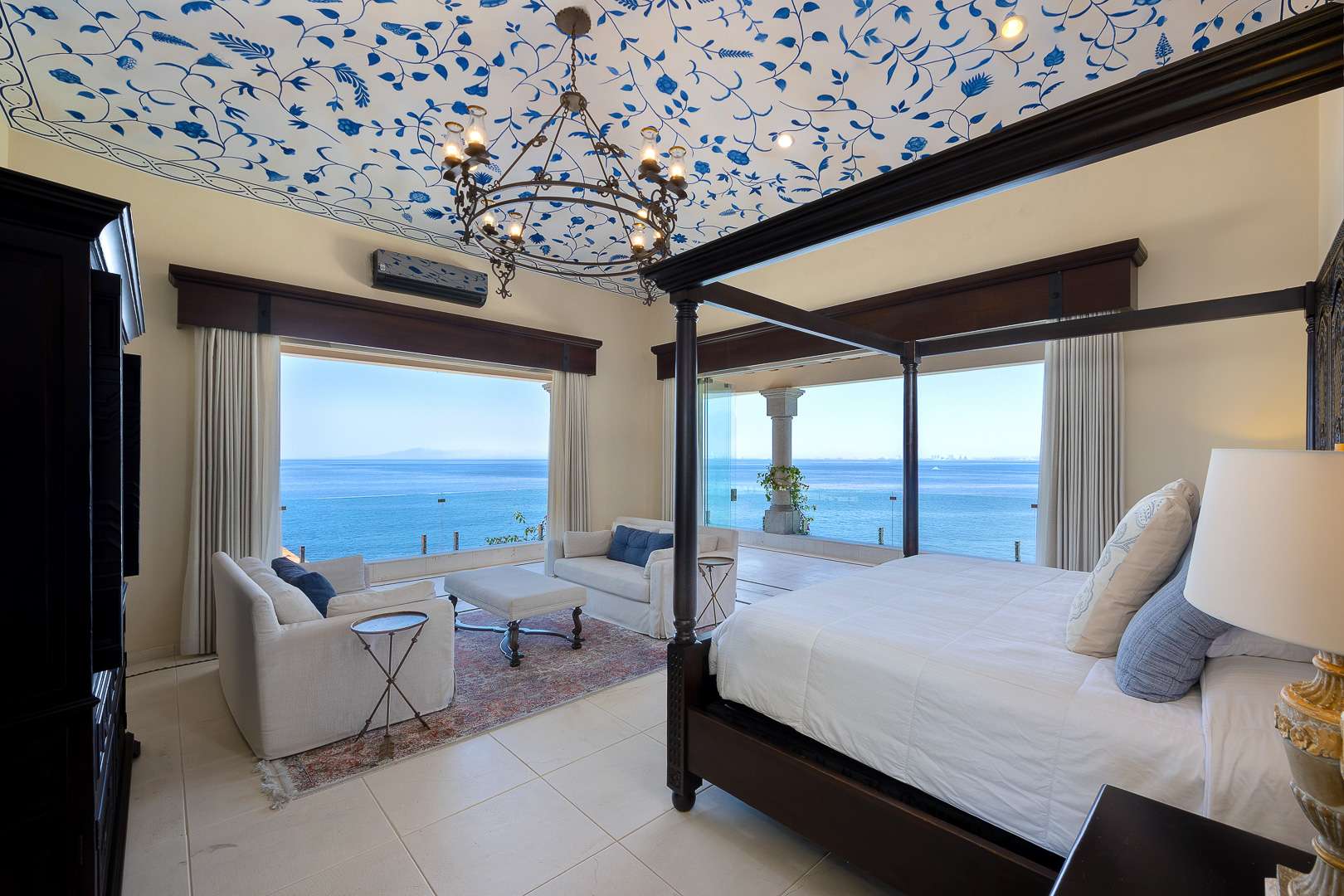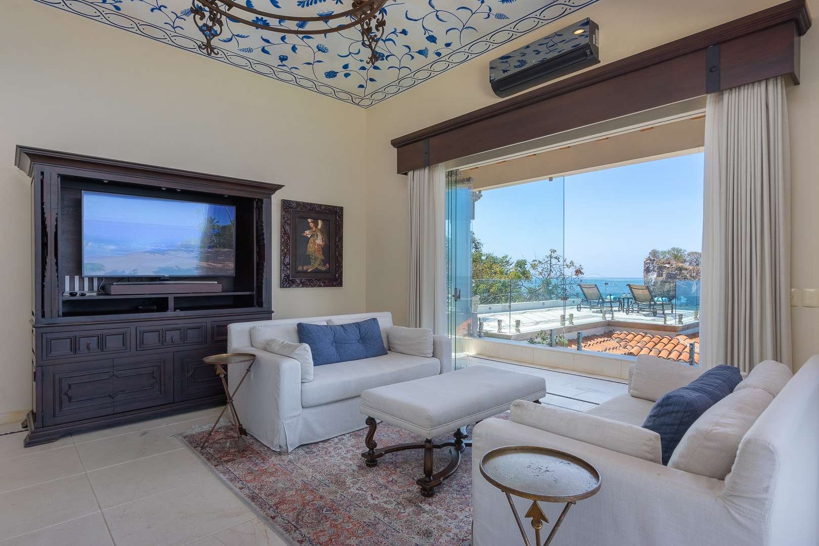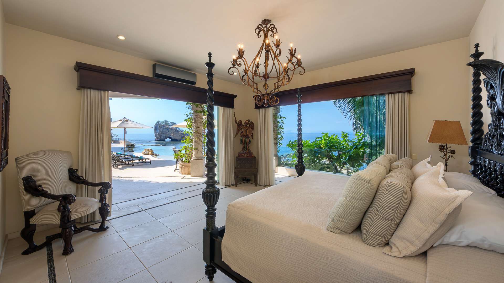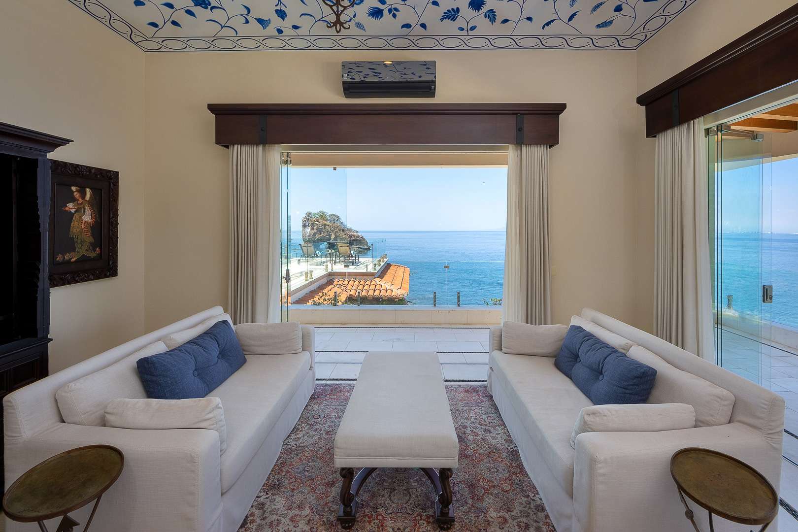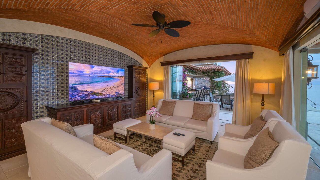 The villa’s architecture celebrates its breathtaking surroundings. Floor-to-ceiling openings blur the line between indoor and outdoor living, allowing natural light, ocean air, and panoramic views to define every space. Elegant living areas feature curated art, refined furnishings, and modern comforts.
