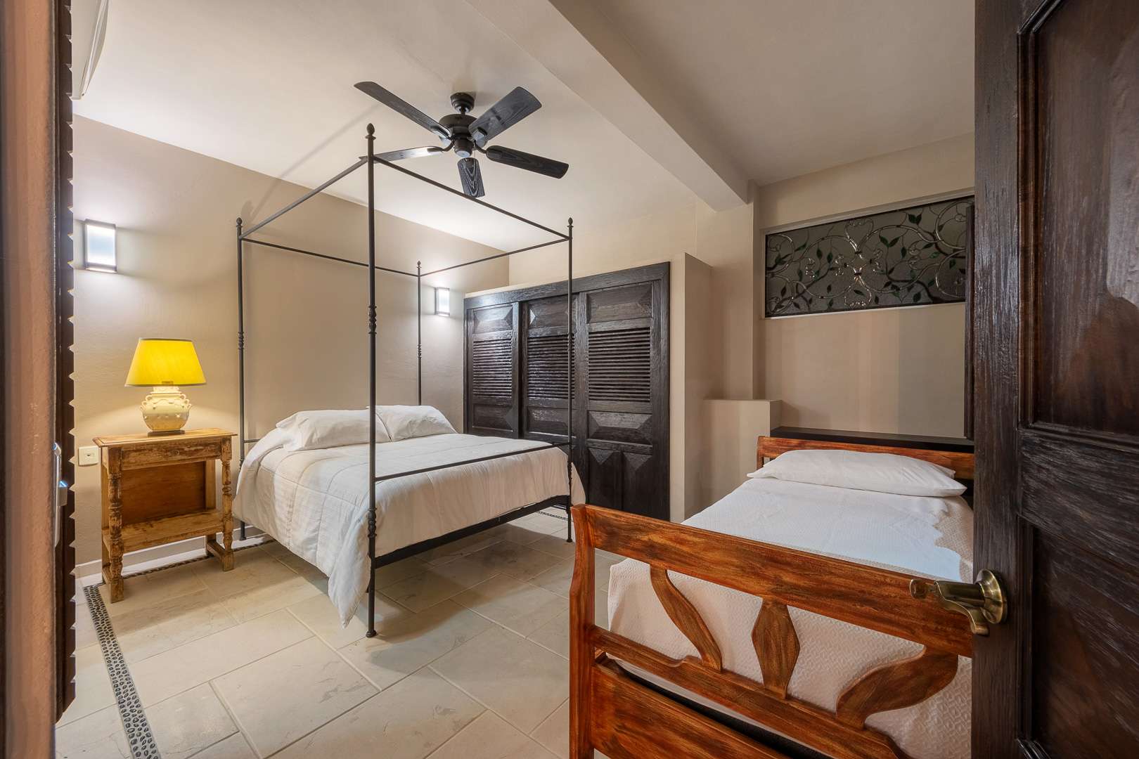 Casa Micahel features six beautifully appointed bedroom suites, each with a private en-suite bath and built-in Jacuzzi. All bedrooms have Satellite television, air conditioning, ceiling fans, and wireless internet.