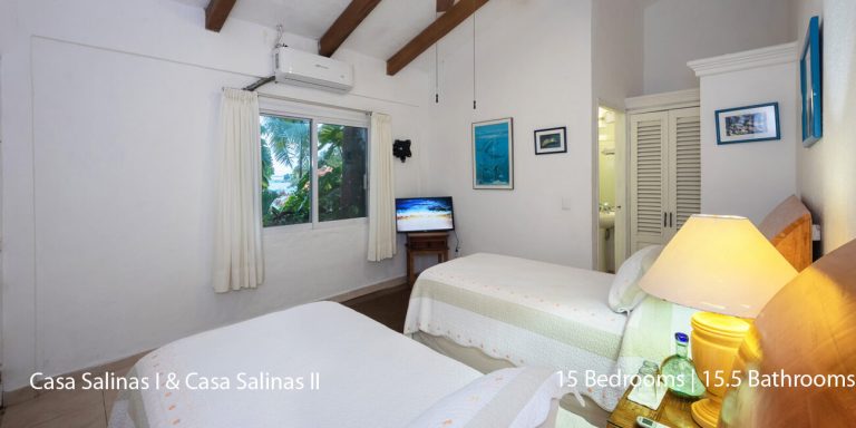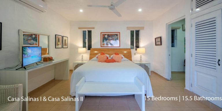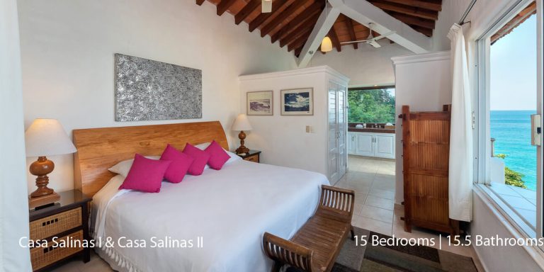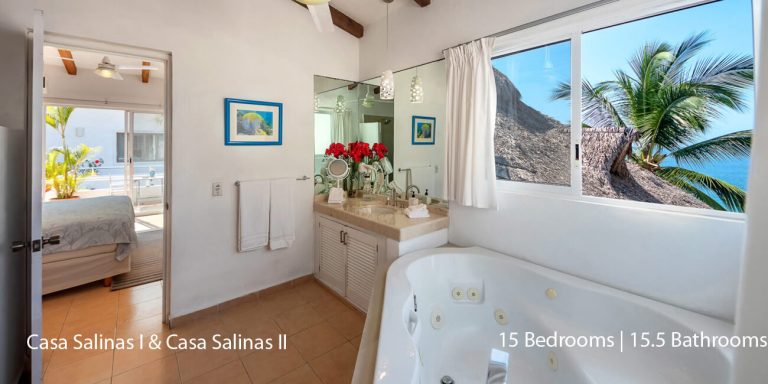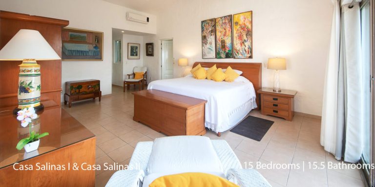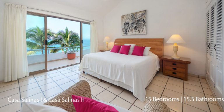 Casa Salinas I features a total of 9 bedroom suites, each with a private en-suite bath. Seven bedrooms have ocean views, and two bedrooms do not have ocean views. The villa will accommodate 18 overnight guests, including children.