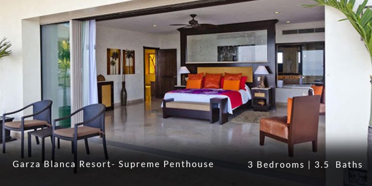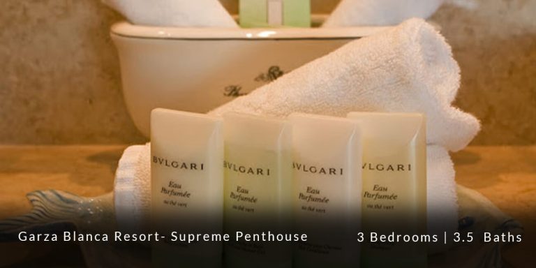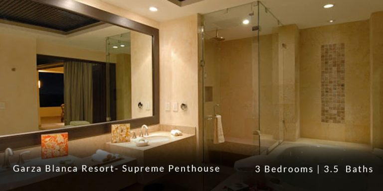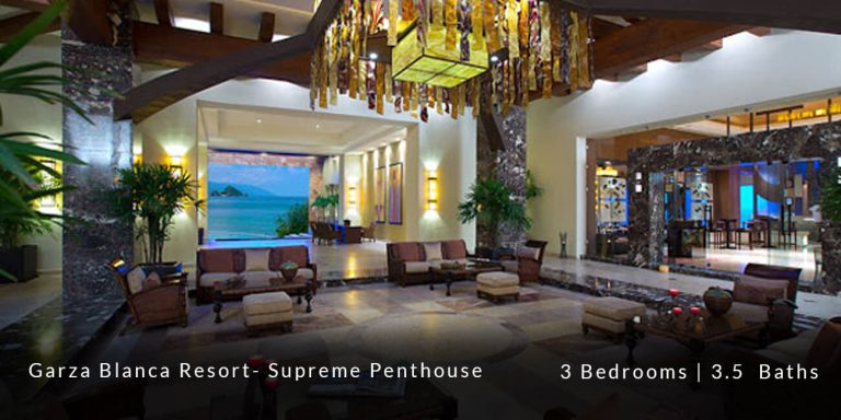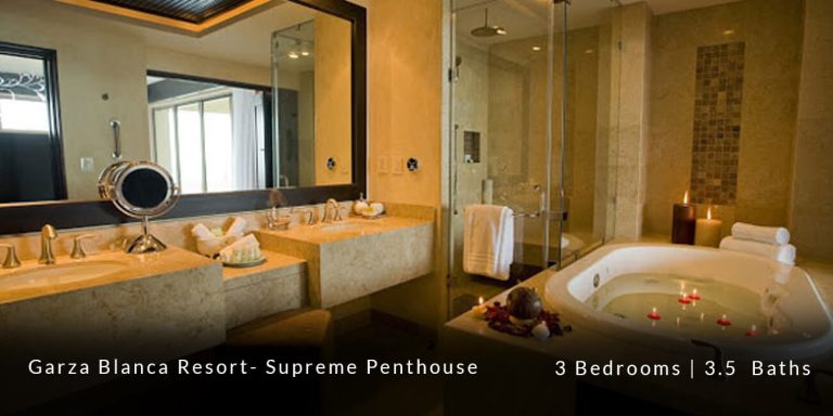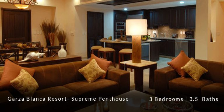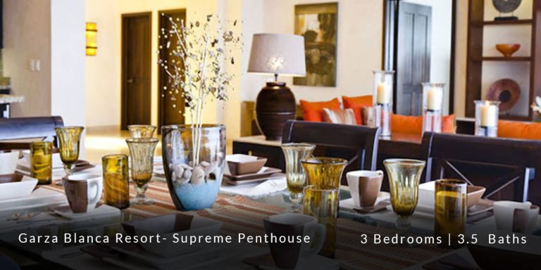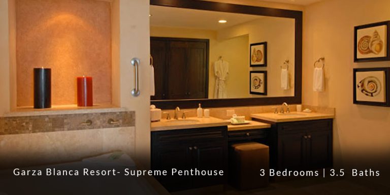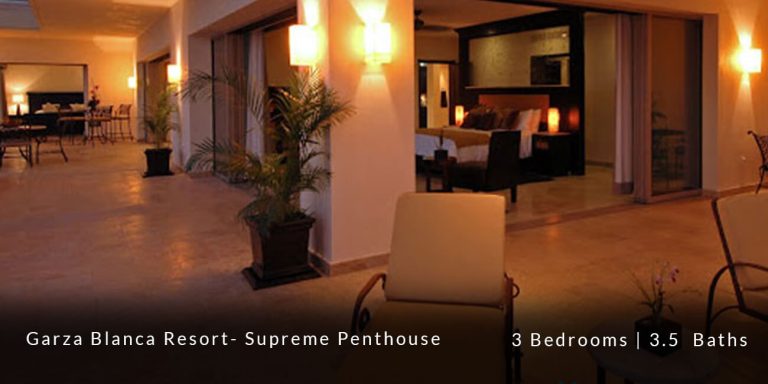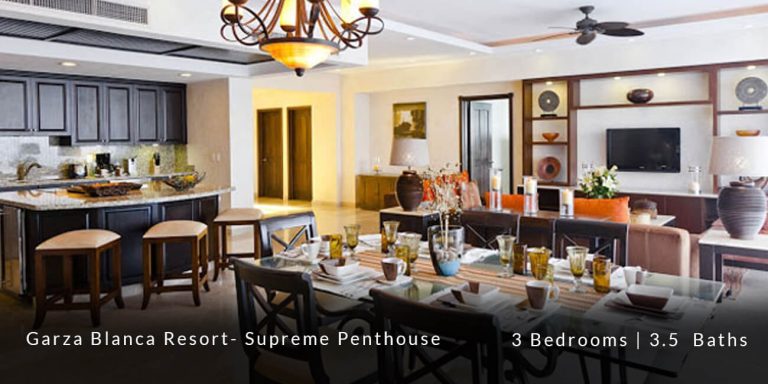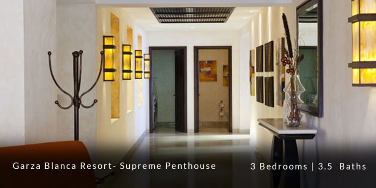 The Garza Blanca Resort Supreme Penthouse features a privileged location in the main atrium building and offers personalized butler service in addition to state-of-the-art room service. This 6,227 square-foot vacation rental residence offers a truly sophisticated and blissful vacation experience for those guests who are in search of that extra special touch of luxury and exclusivity.