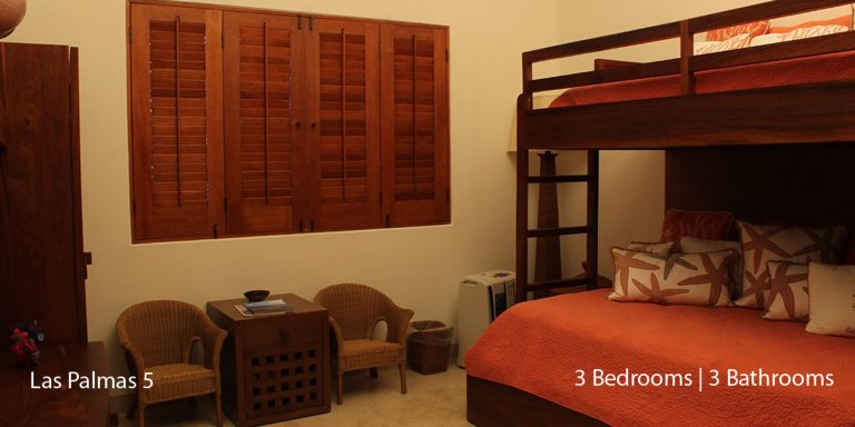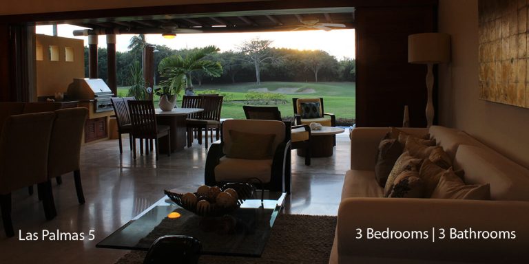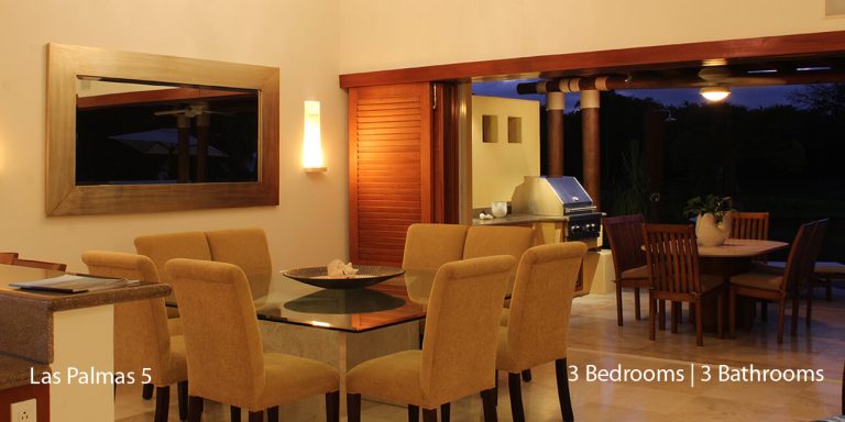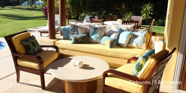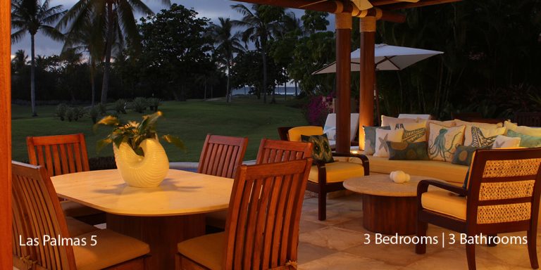 Las Palmas 5 vacation rental is designed as a three-bedroom, each with an en-suite bathroom featuring a golf course and partial ocean view.   The villa will accommodate 8 guests comfortably.  Las Palmas 5 is between the Four Seasons Resort and the St. Regis, two of the finest world-class resorts to enjoy lunch or dinner.