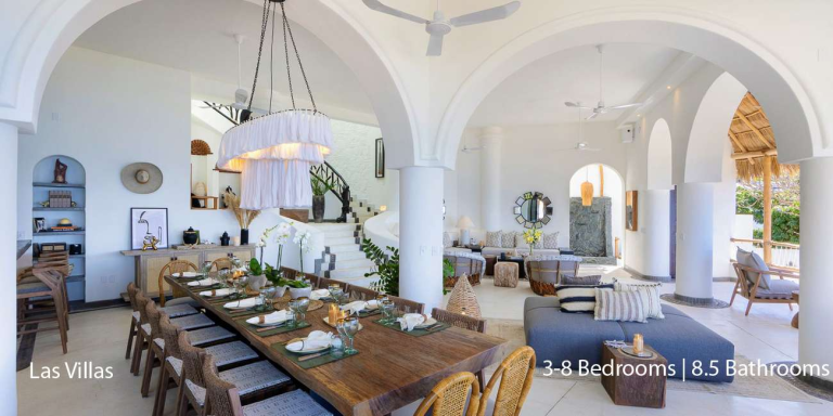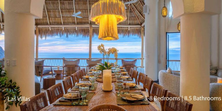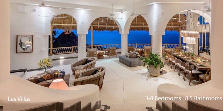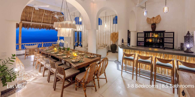 Spanning over 20,528 square feet, this expansive property merges the beauty of nature with sophisticated design. Las Villas offers an array of upscale amenities, including two infinity pools, a Jacuzzi, multiple outdoor palapas, and a state-of-the-art commercial kitchen. Guests will enjoy a seamless flow between indoor and outdoor living spaces, each designed to offer relaxation, entertainment, and spectacular views.