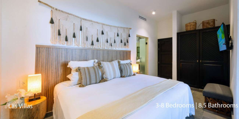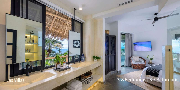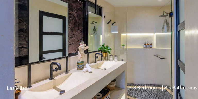 This exclusive estate consists of two separate structures: Casa Cosmos and Casa Mia. With eight lavish bedrooms, each featuring its en-suite bathroom, the villa comfortably accommodates up to 16 guests, offering luxurious and private spaces for everyone. Whether planning a family getaway, a destination wedding, or an executive retreat, Las Villas provides an unparalleled setting for creating unforgettable memories.