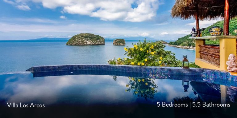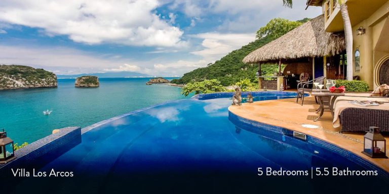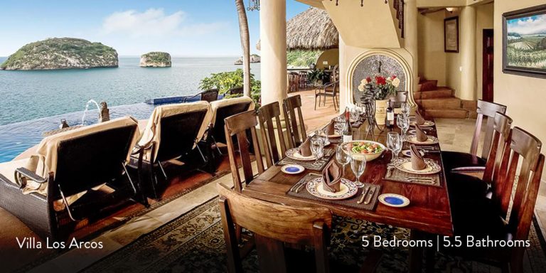 Villa Los Arcos is a Puerto Vallarta villa rental on the shoreline featuring breathtaking views of the Los Arcos Islands. This luxury villa vacation rental is located in Mismaloya, just fifteen minutes south of downtown Puerto Vallarta.