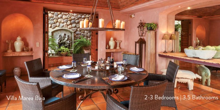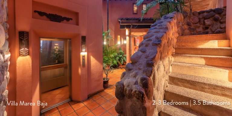 A private elevator will take you to the main entrance of Villa Marea Baja. Here you will enter through antique double doors into 5000 square feet of luxury villa living.