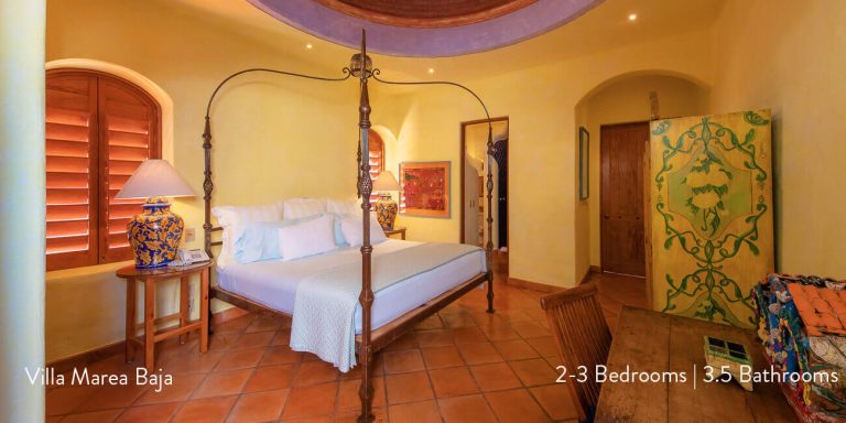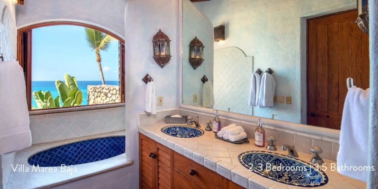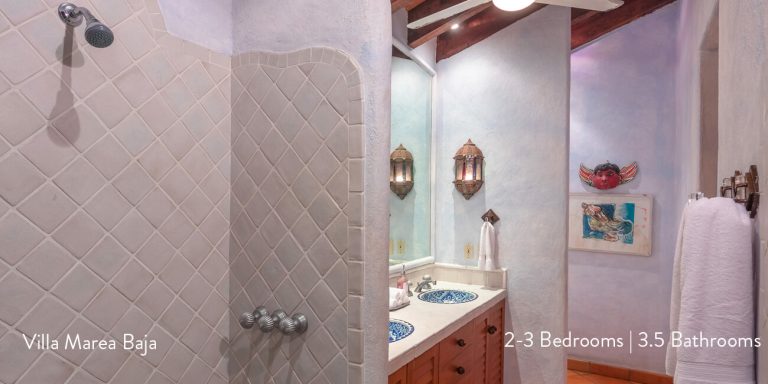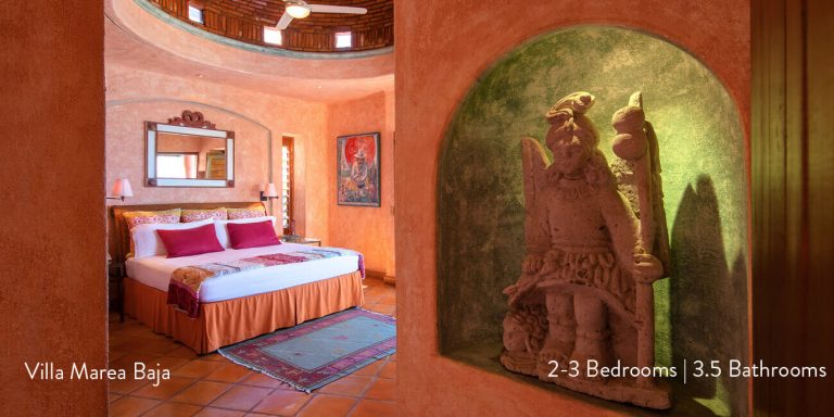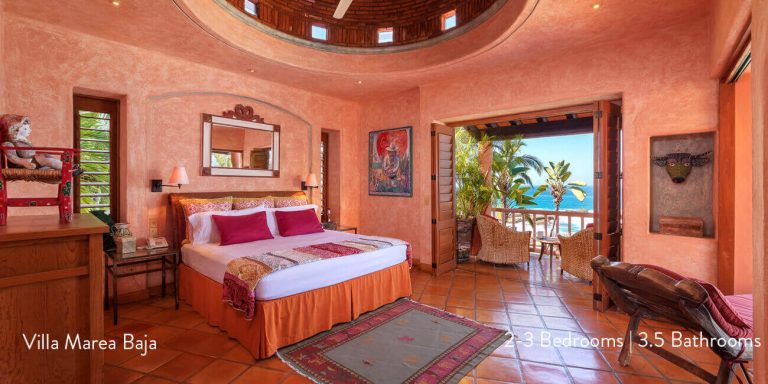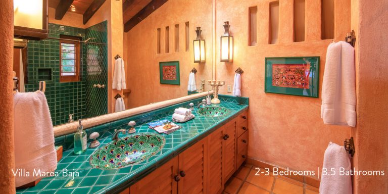 Villa Marea Baja features four beautiful bedroom suites, each with a private en-suite featuring hand-made ceramic tiles and Mexican marble.