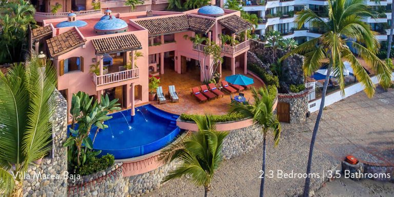 Villa Marea Baja is a luxury villa rental located directly on Amapas Beach, known as the Gold Coast in Puerto Vallarta, and a short walk from the old town of Puerto Vallarta.