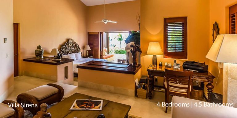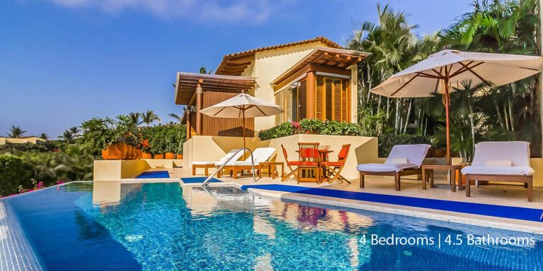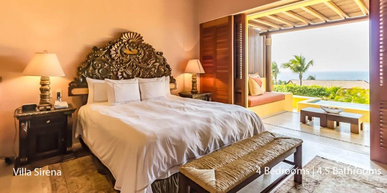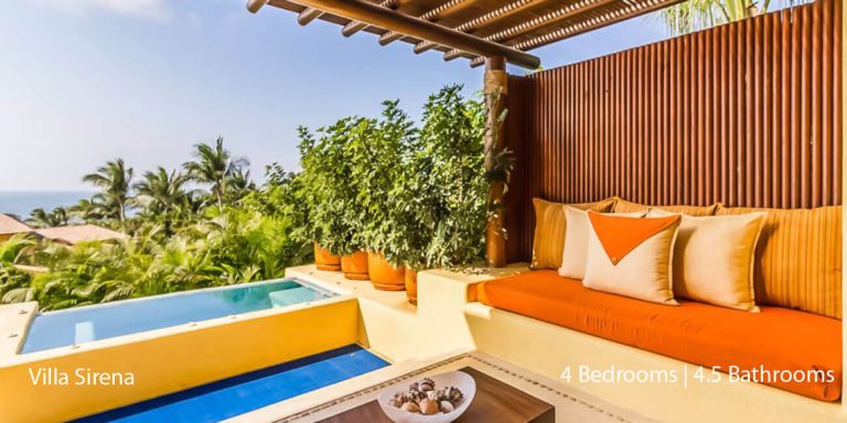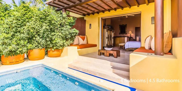 Villa Serena provides you with an exquisite sanctuary for relaxation and entertainment, along with easy access to world-class resort amenities. With four-bedroom suites that will accommodate ten guests, Villa Serena is an ideal vacation rental for destination weddings, families, and groups of friends who are seeking well-appointed privacy along the Mexican Riviera.