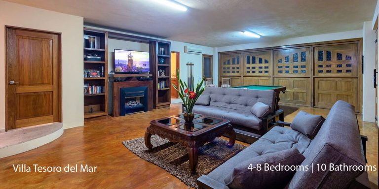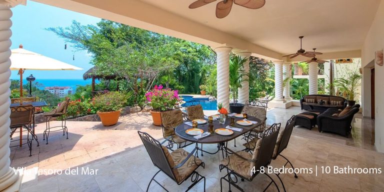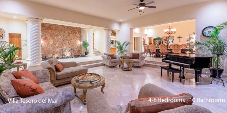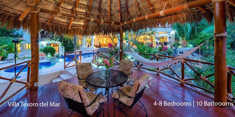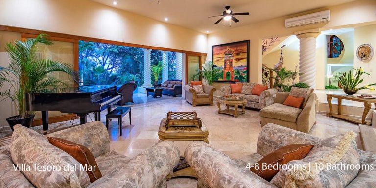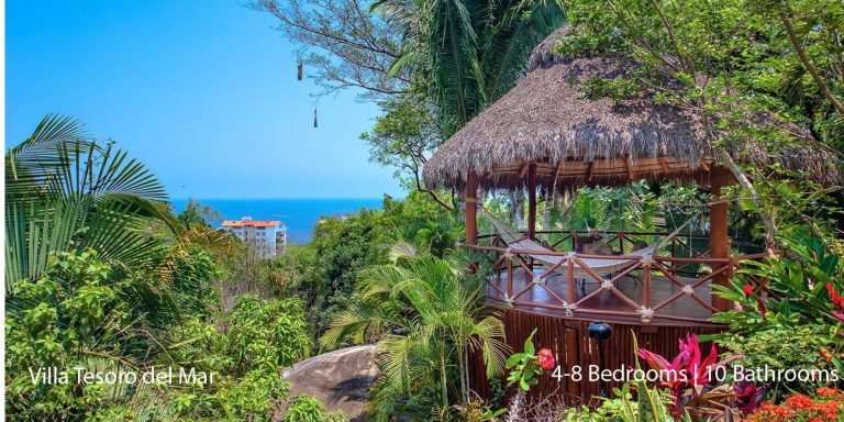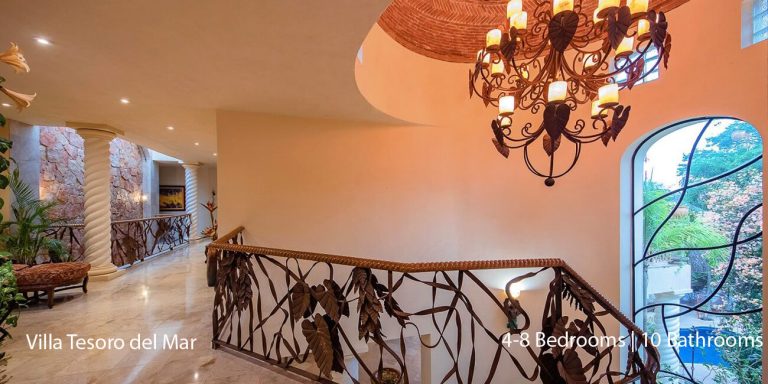 Villa Tesoro del Mar is a luxury villa vacation rental located in the exclusive gated community of Sierra del Mar with 24/7 Gate Security.   This spectacular Mediterranean villa features over 10,000 square feet of luxury living overlooking Banderas Bay and the Sierra Madre Mountains. Lush tropical gardens surround the villa for total privacy.