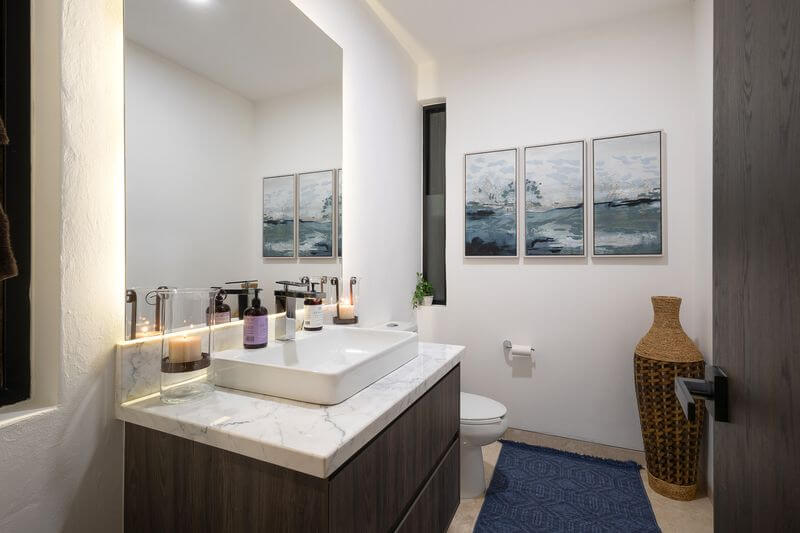 The elegant lines of this spectacular villa are enhanced throughout by the organic touches of art, furnishings, and textiles. The blend of modern luxury and Mexican charm fills this enchanting home.
