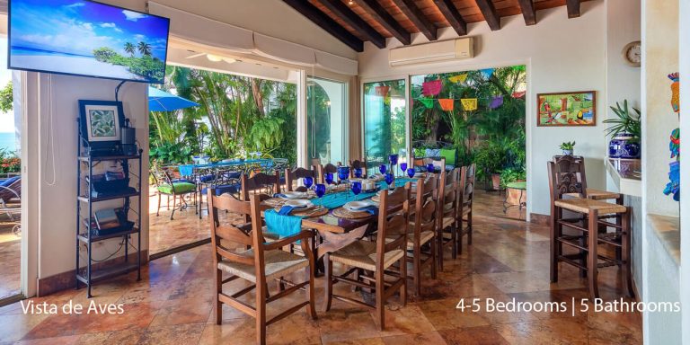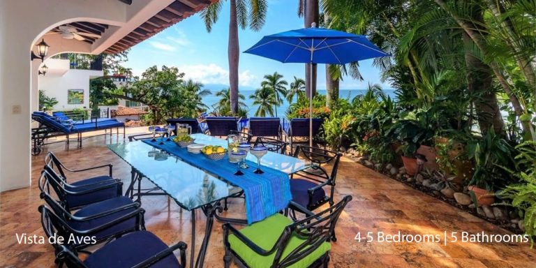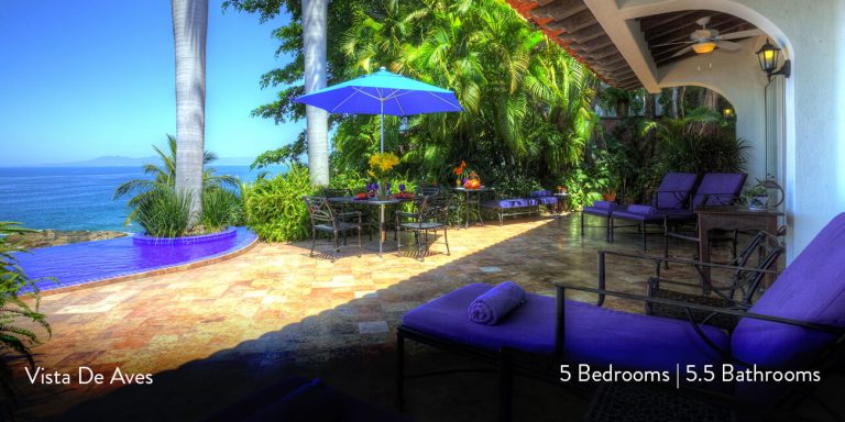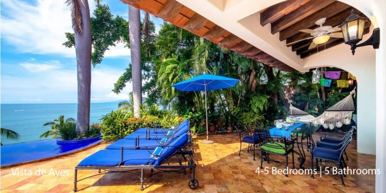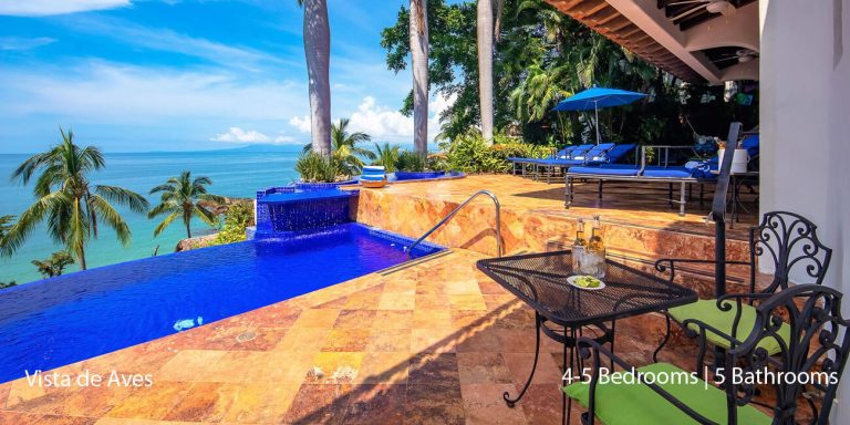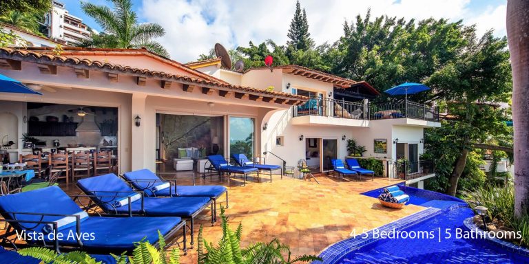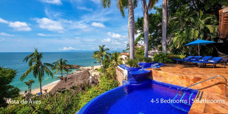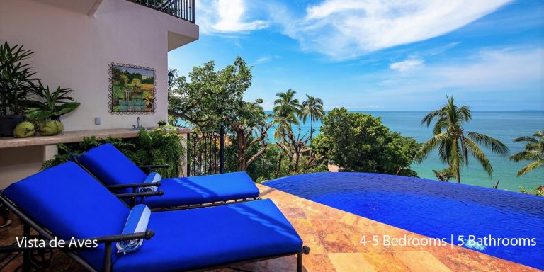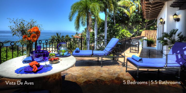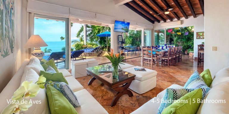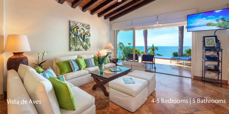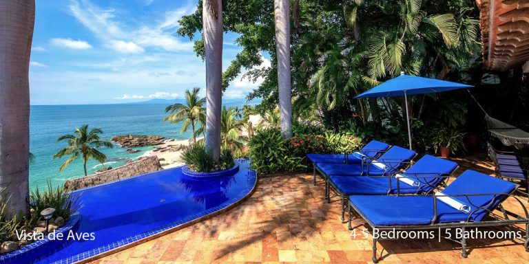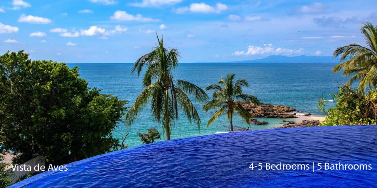 Vista de Aves, Puerto Vallarta, is a beachfront villa featuring magnificent vistas of Banderas Bay in lower Conchas Chinas.