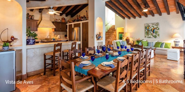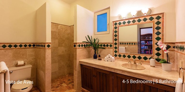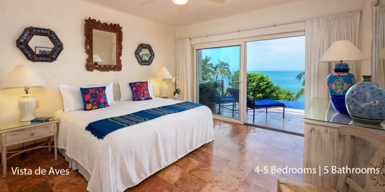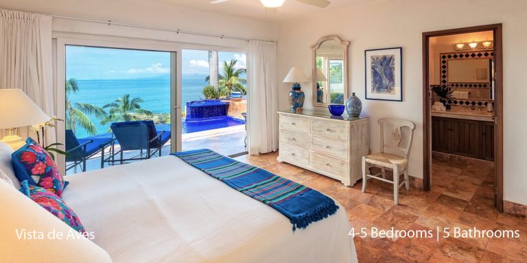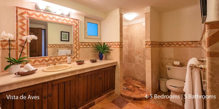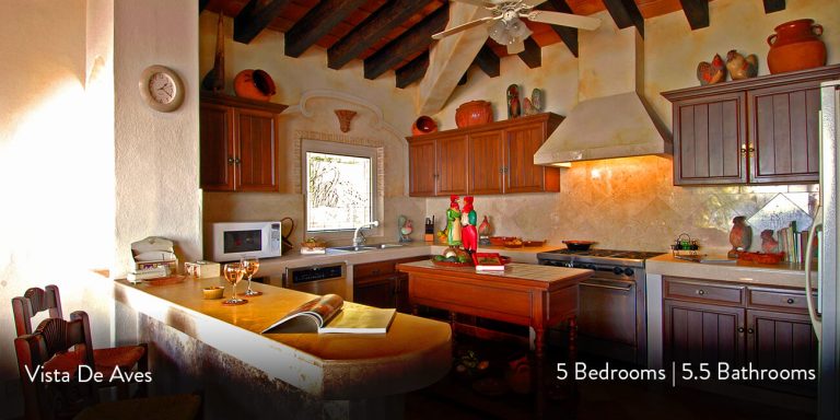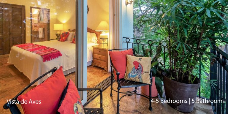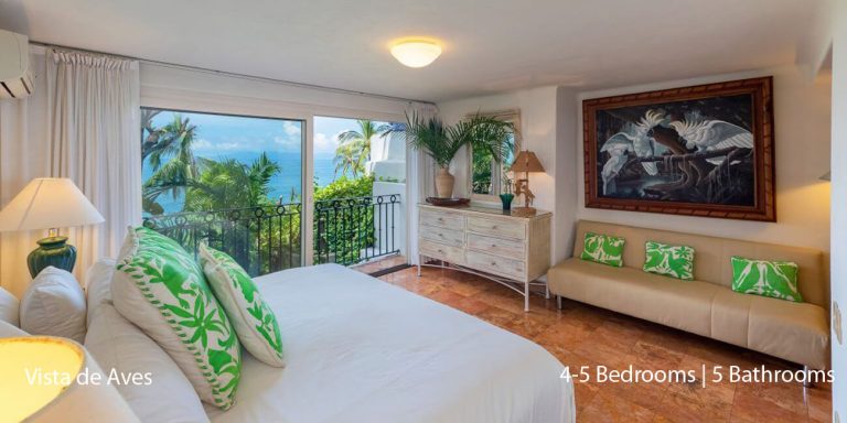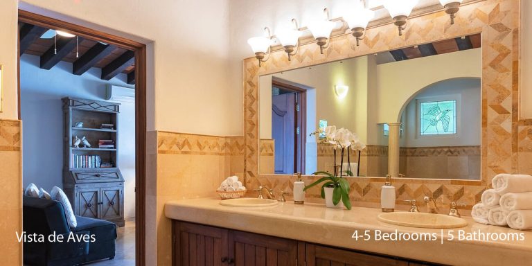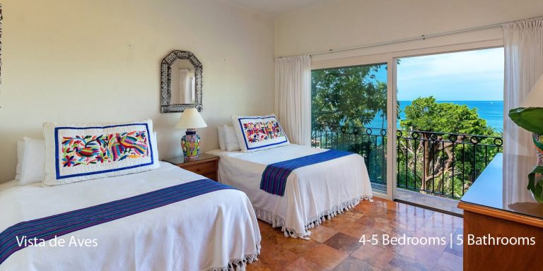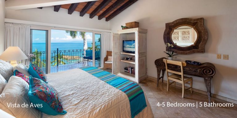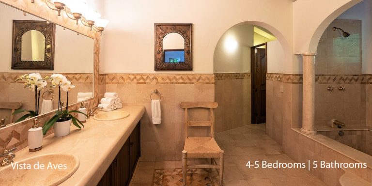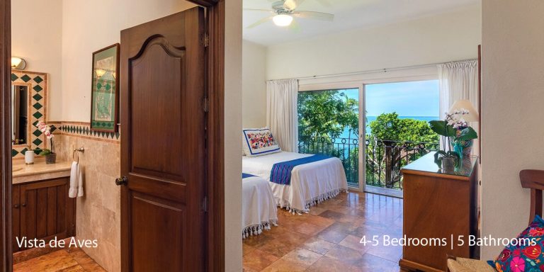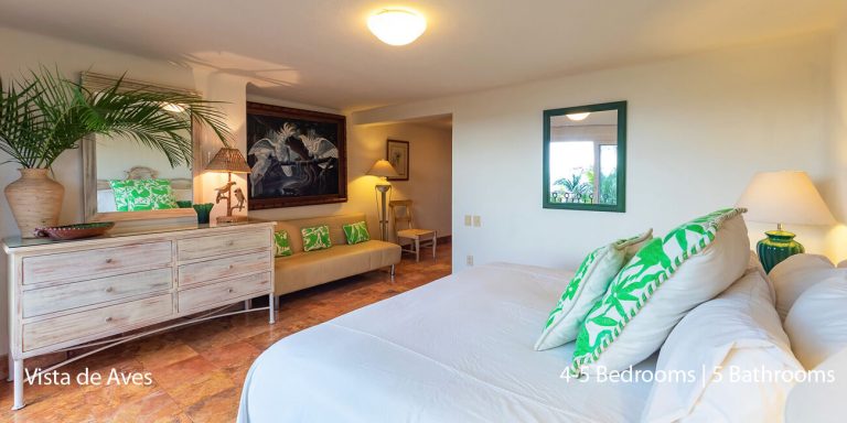 Vista de Aves has five-bedroom suites. Three bedrooms, each with a king bed, two guest suites have queen beds; all have private en-suite baths and beautiful views.
